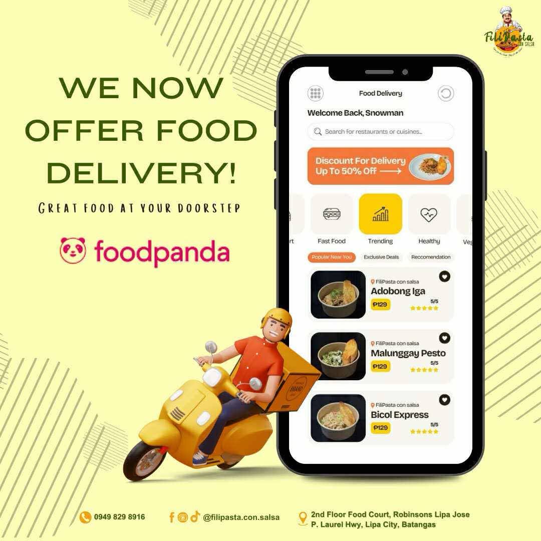 Craving your FillPasta con Salsa favorites but don't want to leave the house? 🛵💨 Good news! We've partnered with foodpanda to bring our delicious dishes right to your doorstep! 🎉